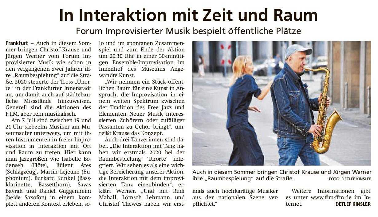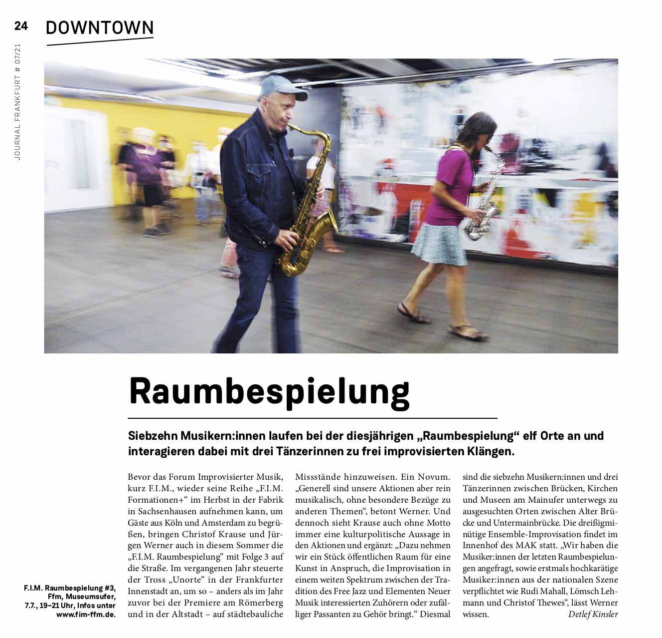 Journal Frankfurt, Juli 2021: Raumbespielung