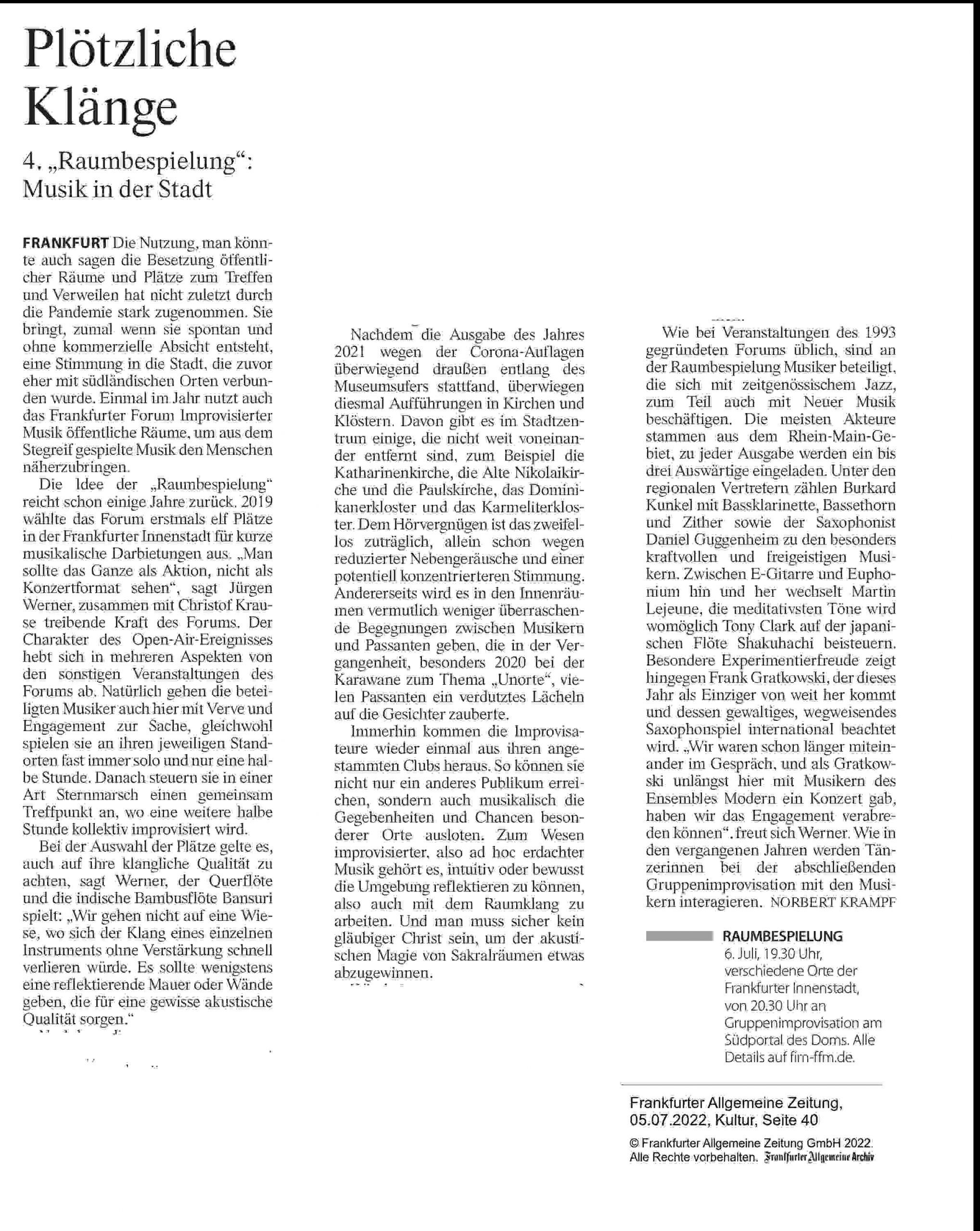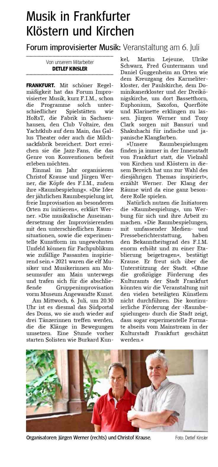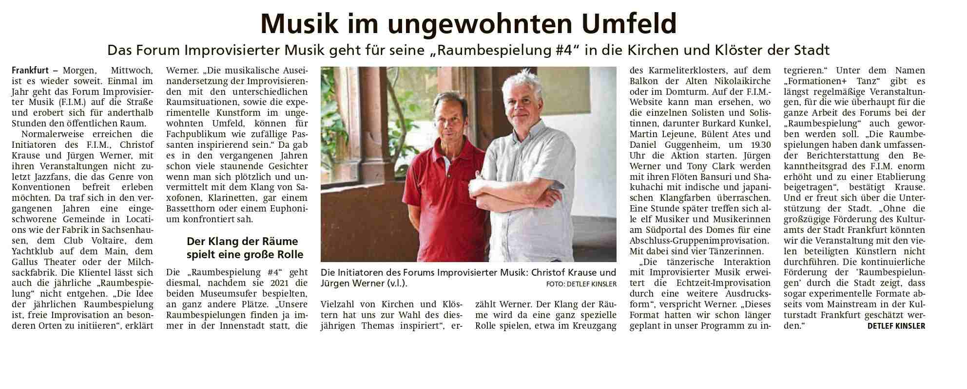 FNP, Juli 2022: Musik im ungewohnten Umfeld