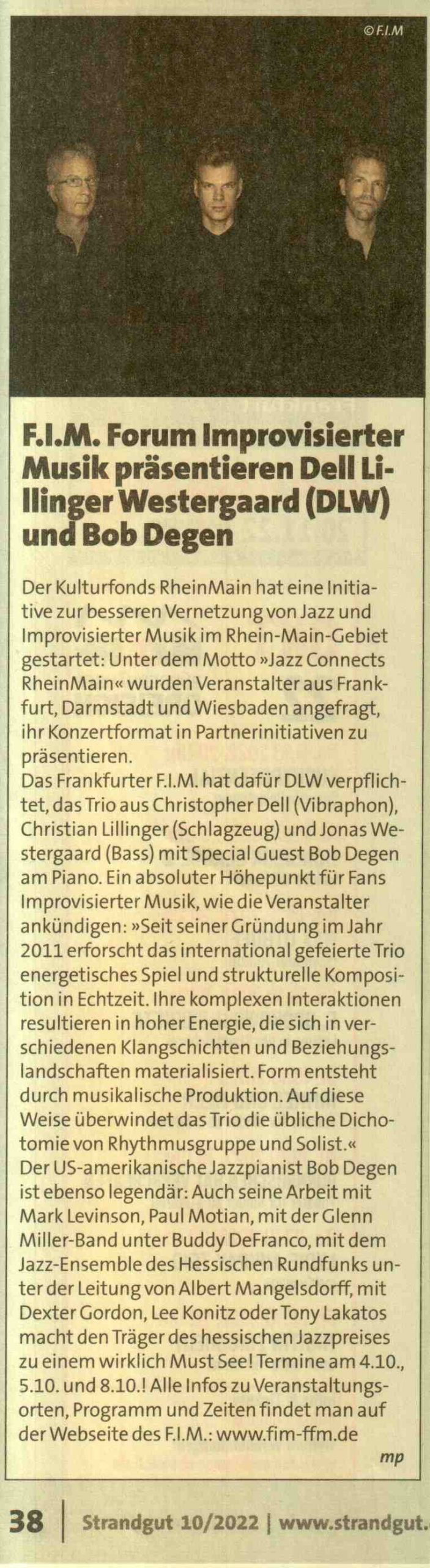 Strandgut, Oktober 2022: F.I.M. präsentieren DLW und Bod Degen