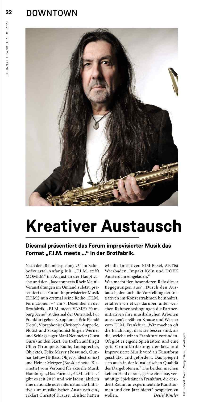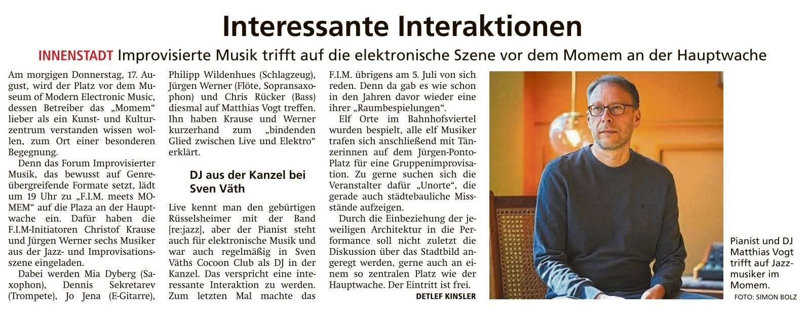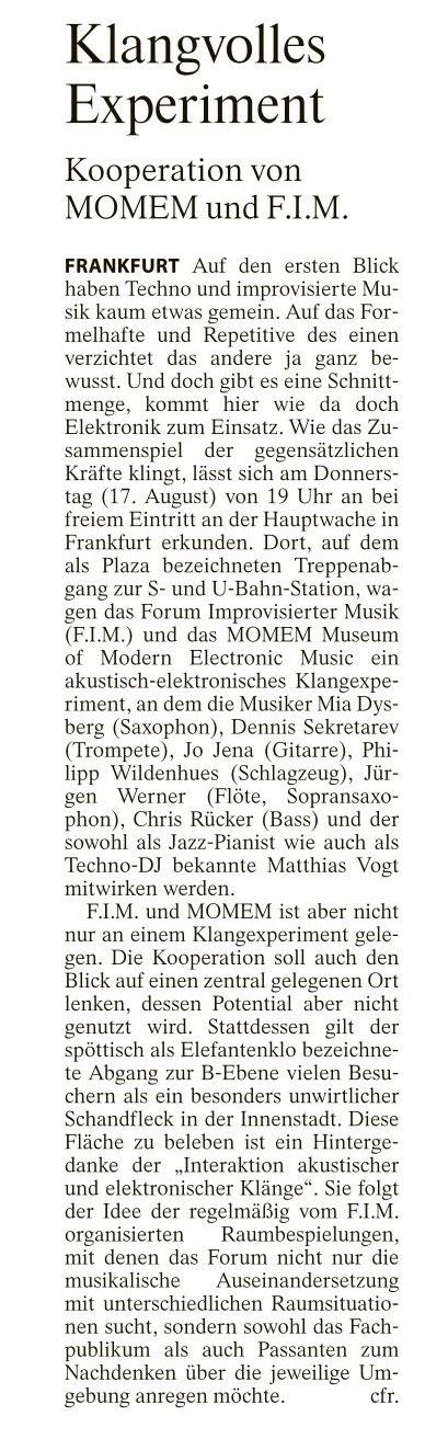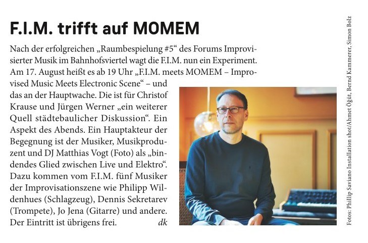 Journal Frankfurt, August 2023: F.I.M. trifft auf MOMEM