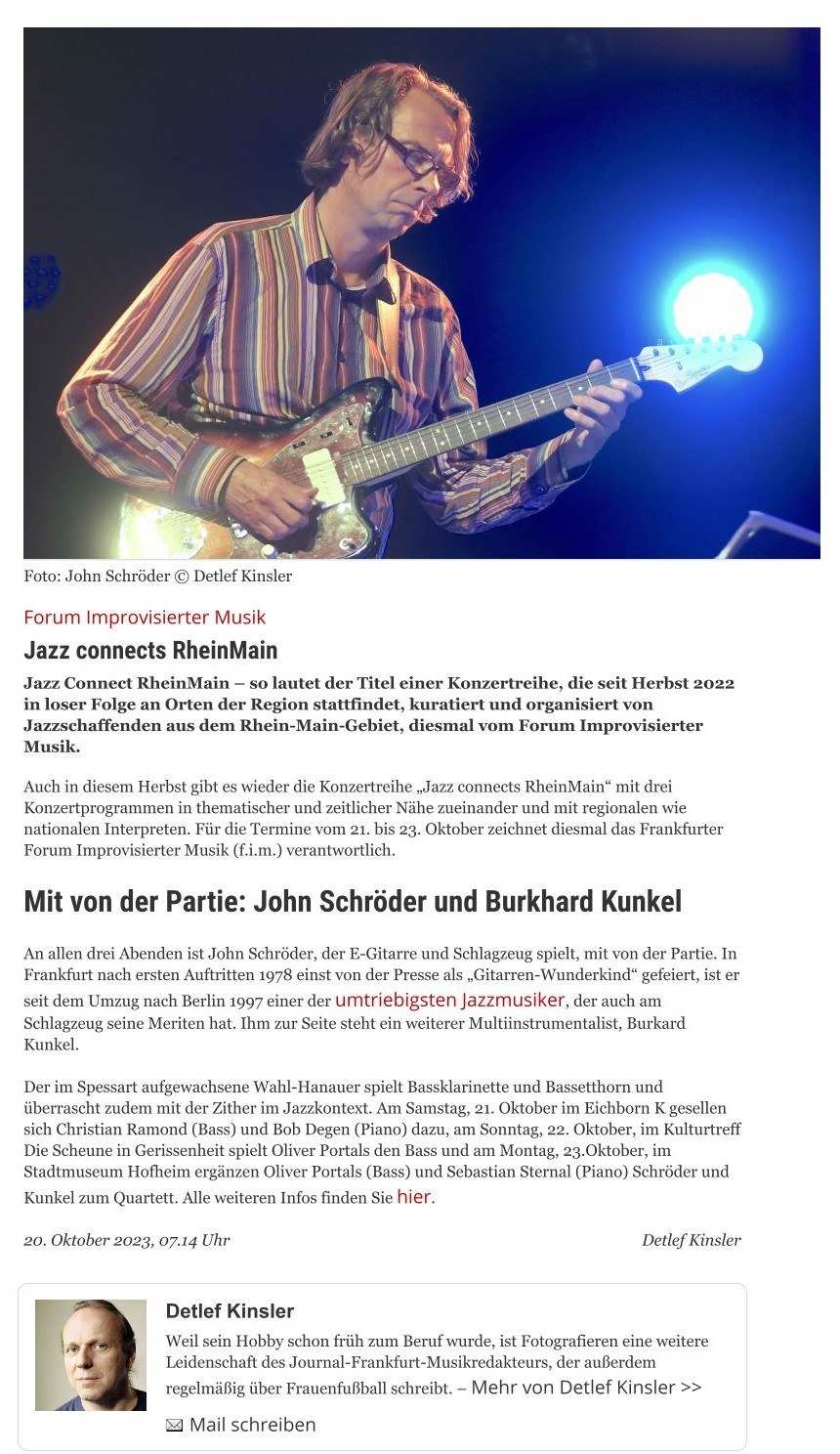 Journal Frankfurt, Oktober 2023: Mit von der Partie: John Schröder und Burkard Kunkel