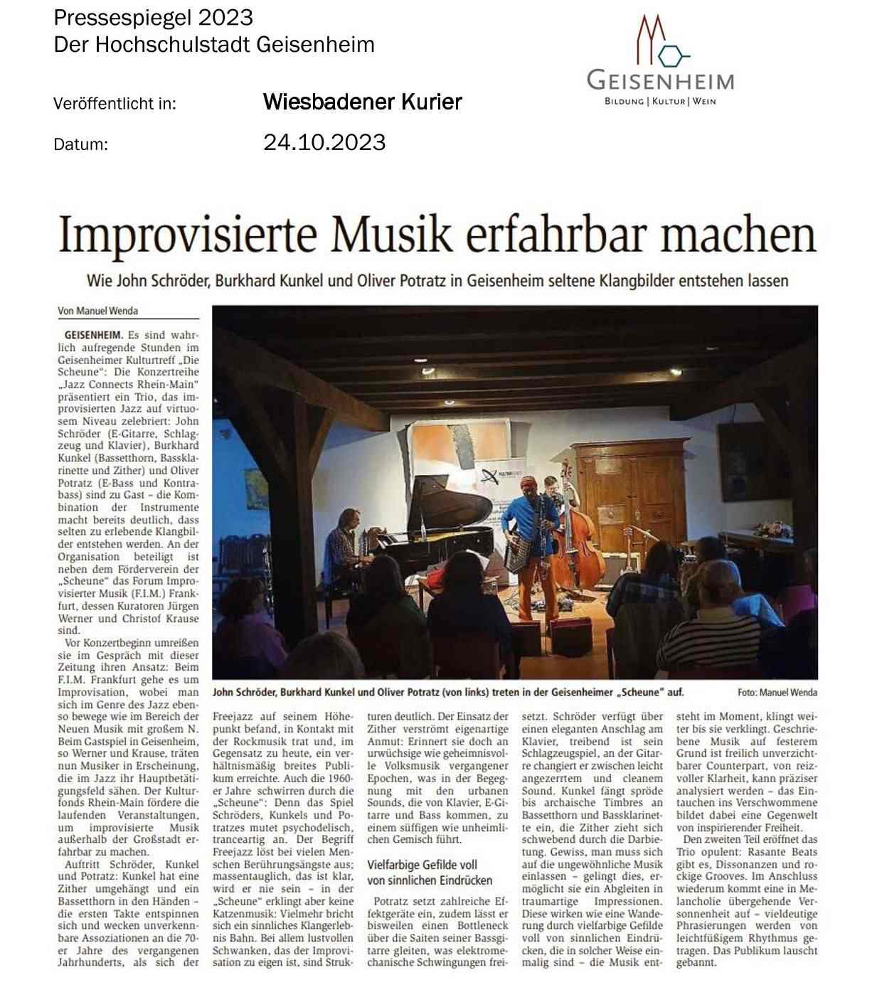 Wiesbadener Kurier, Oktober 2023: Improvisierte Musik erfahrbar machen