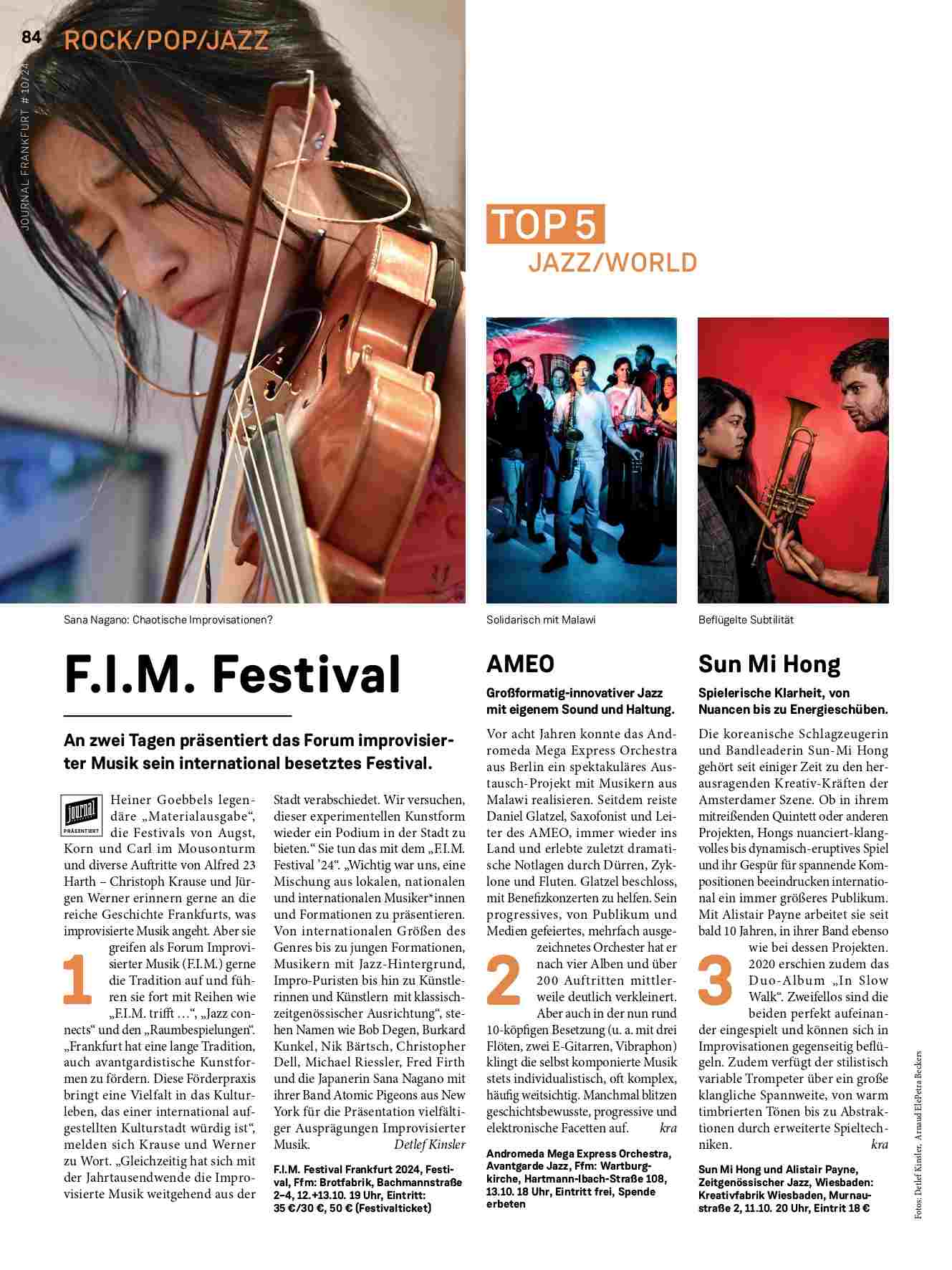 Journal, Oktober 2024: TOP 1 – Jazz/World: F.I.M. Festival