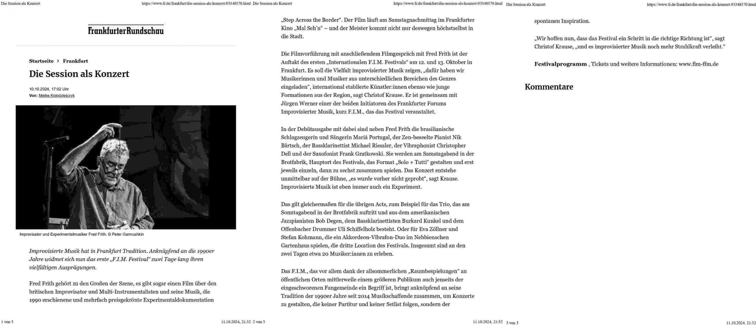 FNP, Oktober 2024: Zwei Tage voll mit improvisierter Musik