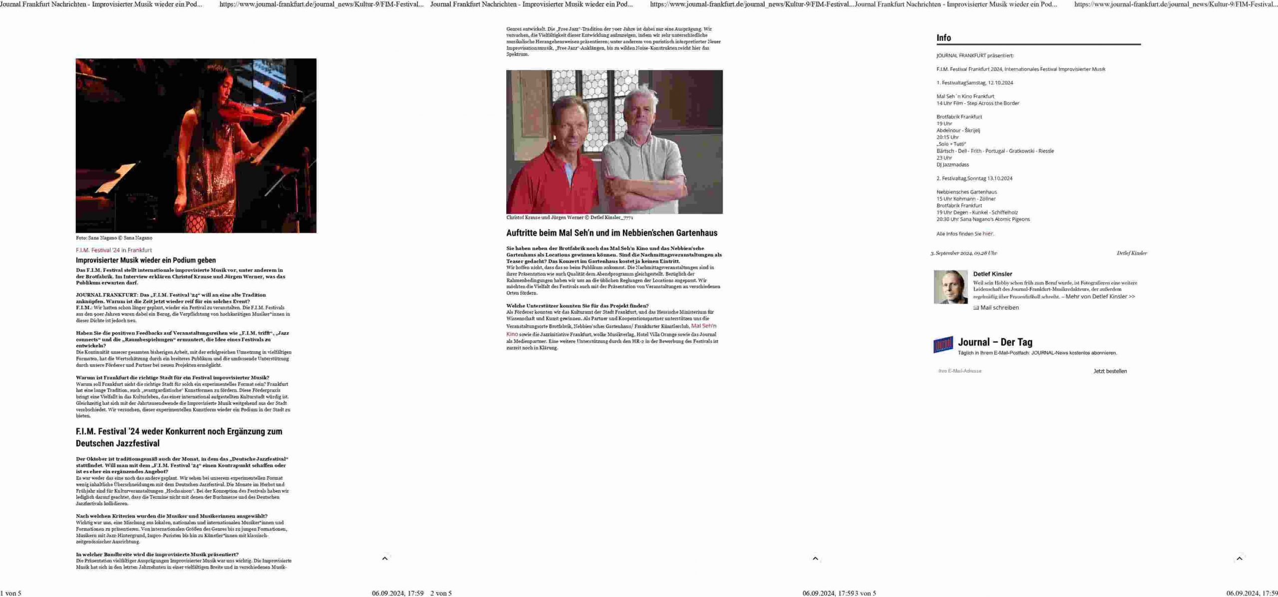 Journal, Oktober 2024: F.I.M. Festival´24 weder Konkurrent noch Ergänzung zum Deutschen Jazzfestival